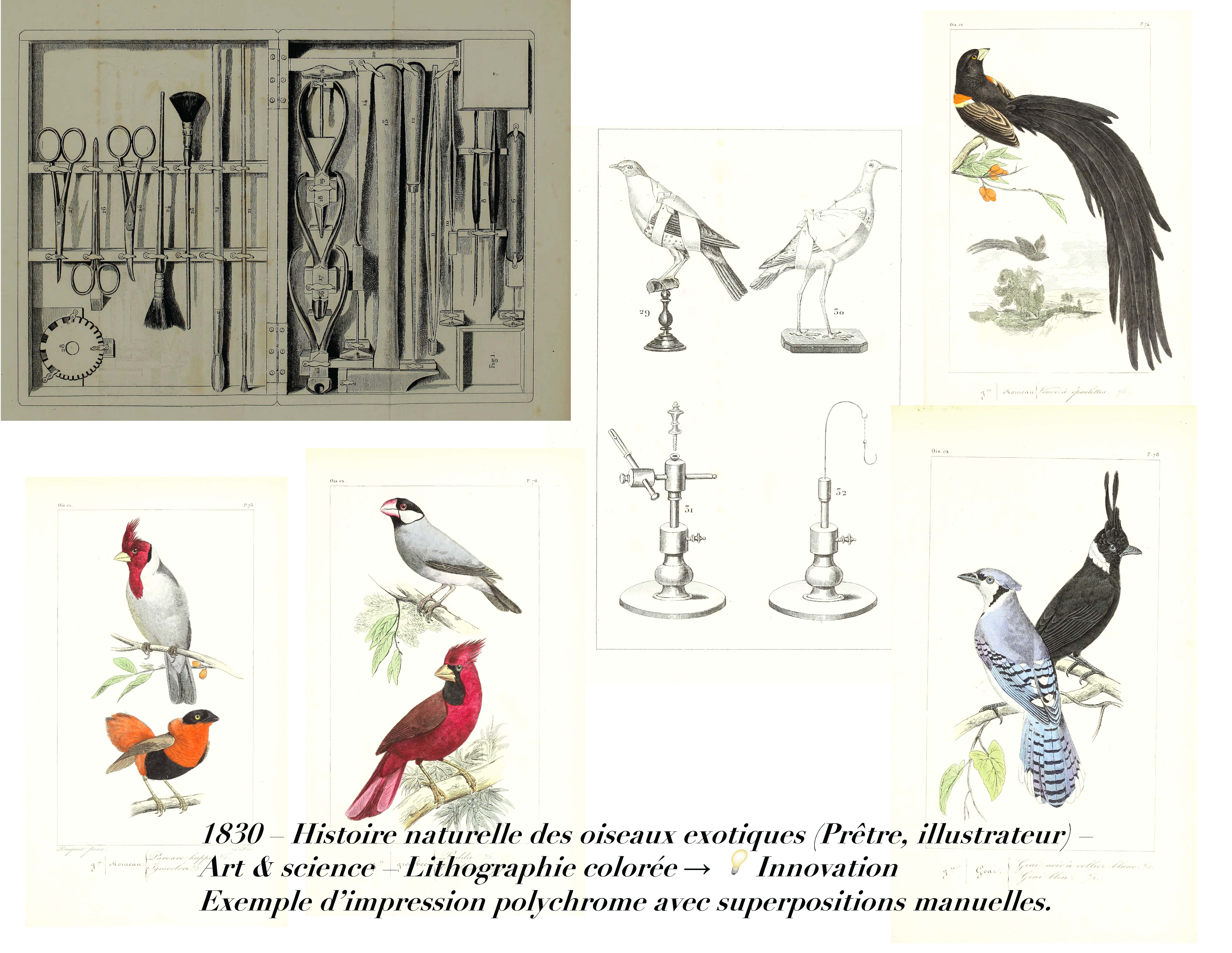 - La lithographie à plat : Technique révolutionnaire qui démocratise l’image photographique et mène vers la photogravure.