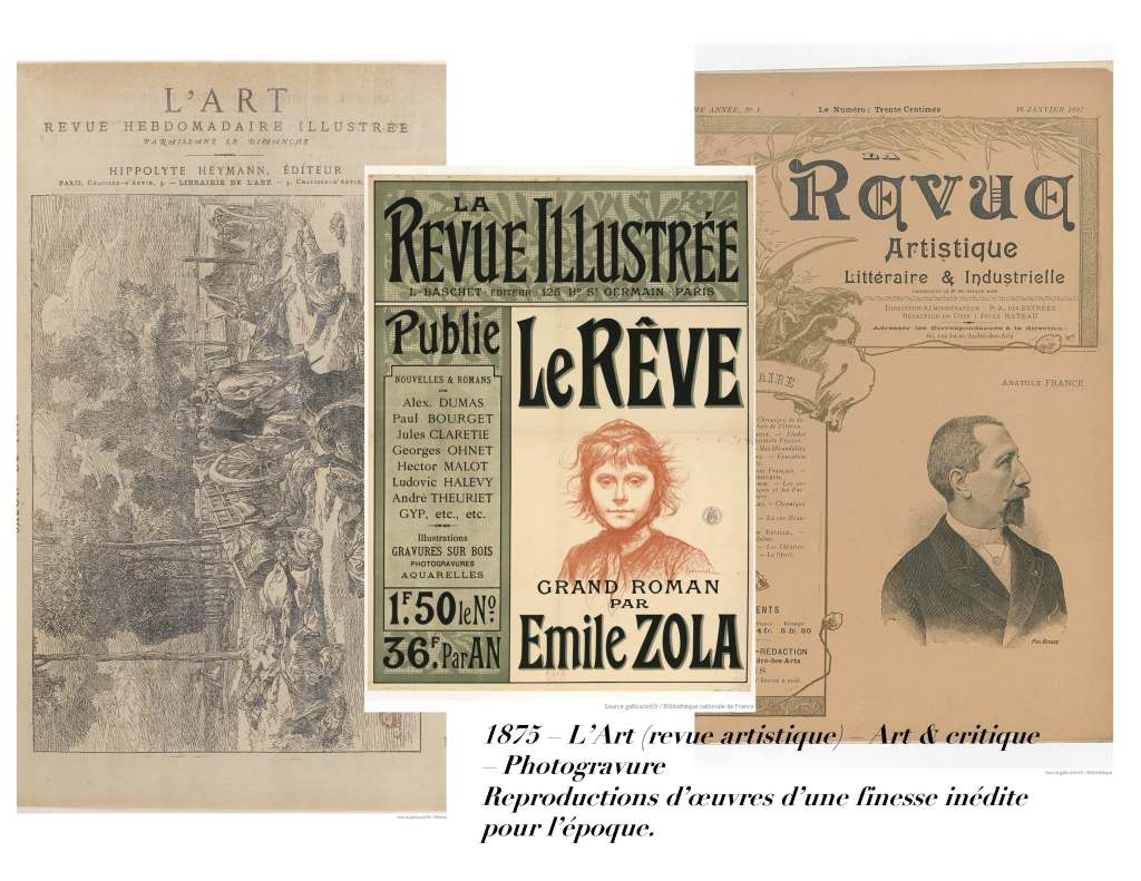 - « L’Art » (1875-1896) : revue artistique française qui fit un large usage de la photogravure pour reproduire des œuvres d’art avec grande finesse.