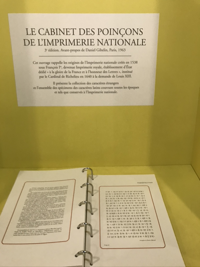 C’est également une histoire des signes, typographiques, celle des poinçons de l’Imprimerie Nationale conservés quelque part, mais rarement montrés. C’est une histoire bis du passage, en terme de transmission, du patrimoine commun universel, et un dossier qui prend la poussière au ministère de la Culture : le cabinet des poinçons suite à la fermeture et à la vente des locaux de l’ancienne imprimerie nationale dans le XVème art de Paris, qui est toujours en suspens..
