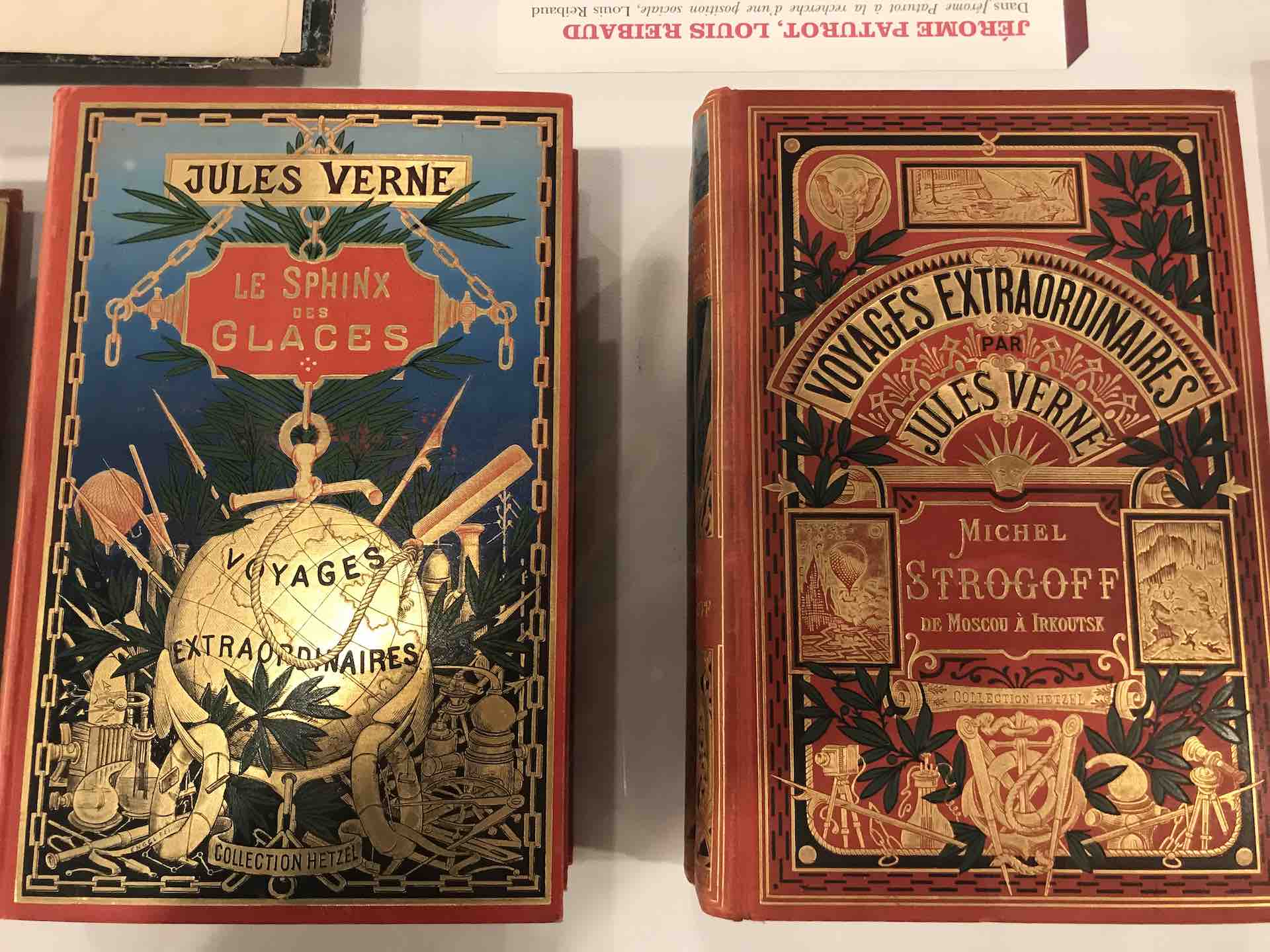 Un exemple avec la vitrine rassemblant les ouvrages de Jules Verne, où malgré ses visions et le succès de ses éditions, Jules Verne restera incompris malgré l’étendue de son œuvre, la renommée de sa postérité limité aux seuls récits d’imagination pure, censément destinées aux enfants..