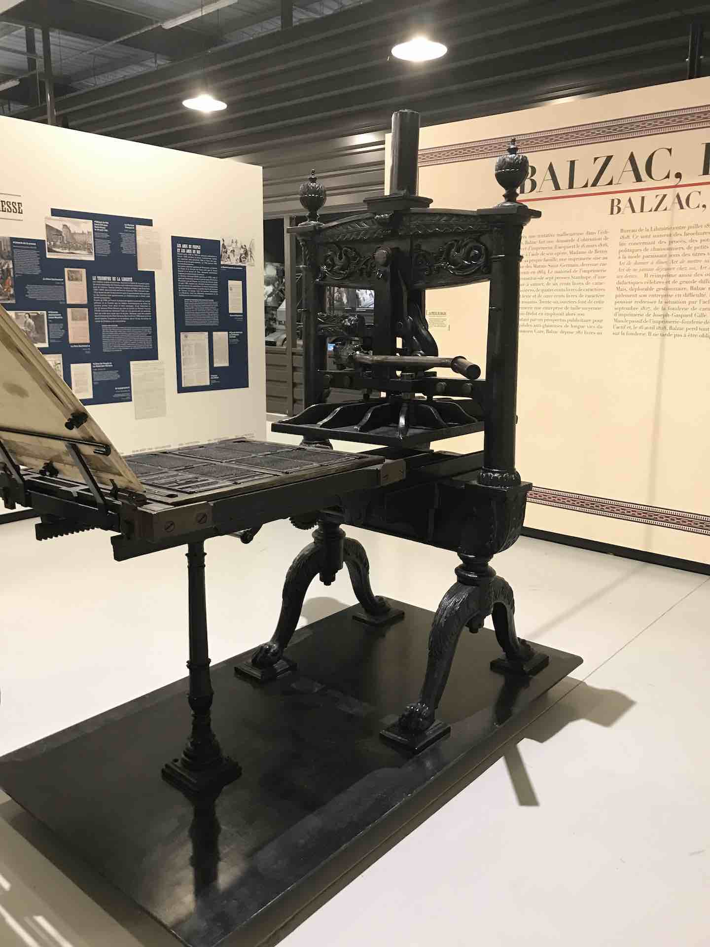 Dans une partie de la visite on retrace la saga des éditions de l’imprimeur Balzac qui devient auteur afin de rembourser ses débiteurs, suite la banqueroute de son activité d’éditeur imprimeur.